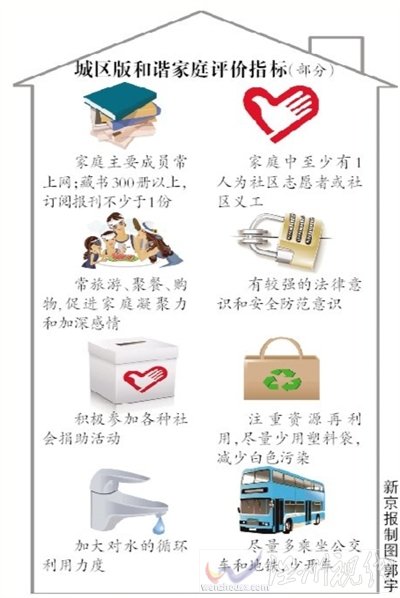 另外,新的和諧家庭評(píng)選標(biāo)準(zhǔn)納入了不少“時(shí)髦”的新標(biāo)準(zhǔn),如“家庭主要成員經(jīng)常上網(wǎng),家庭藏書(shū)量300冊(cè)以上”;“經(jīng)常有旅游、聚餐、購(gòu)物等家庭活動(dòng)”等。