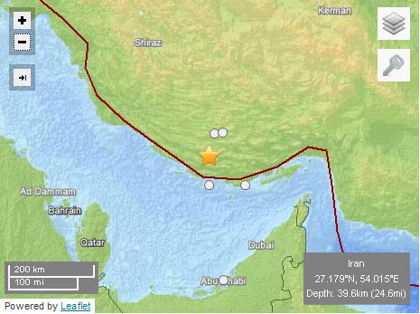 伊朗地震時間為6日上午6點27分14,震級5.1級,地震震源深度為39.6公里。