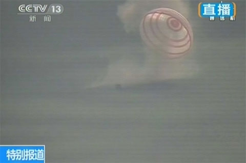 神舟十號載人飛船返回:神舟十號返回艙著陸。