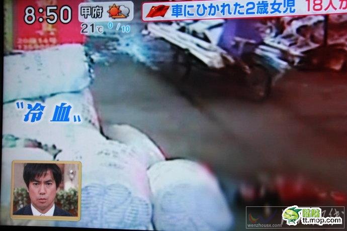 新聞節(jié)目的題目是“中國人無視被碾女孩” ,我拍下了一部分節(jié)目的畫面,從中可以看出日本人看待“小悅悅事件”的態(tài)度和視角。