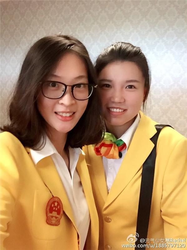 在惠若琪和朱婷的合照中,惠若琪還配上了一張兩人的漫畫(huà)稱右邊的小人是自己因?yàn)楸茸筮叺陌装雮€(gè)色號(hào)。在與張夢(mèng)雪的合照中,兩人還原了“張氏冷漠臉”,惠若琪配文到:“這次是冷漠臉創(chuàng)始人@張夢(mèng)雪_0206 哈哈哈 其實(shí)笑起來(lái)很好看好嗎”。