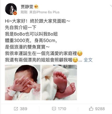 2016年9月30日,賈靜雯公開消息,已懷孕4個(gè)月。